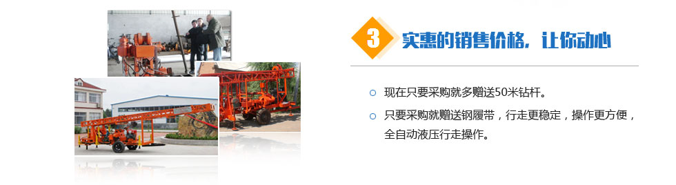 公司將繼續本著一如既往的努力,不斷發展。公司及時解決客戶生產過程中遇到的實際問題。創新文化:永不滿足,超越自我。以最完善的服務來滿足廣大用戶的需求。竭誠與您合作,共創美好明天。產品銷往全國各地,贏得用戶的一致好評,歡迎新老客戶光臨。水井鉆機公司真誠歡迎中外賓朋與本公司建立友誼。產品暢銷三十多個省市,深受廣大